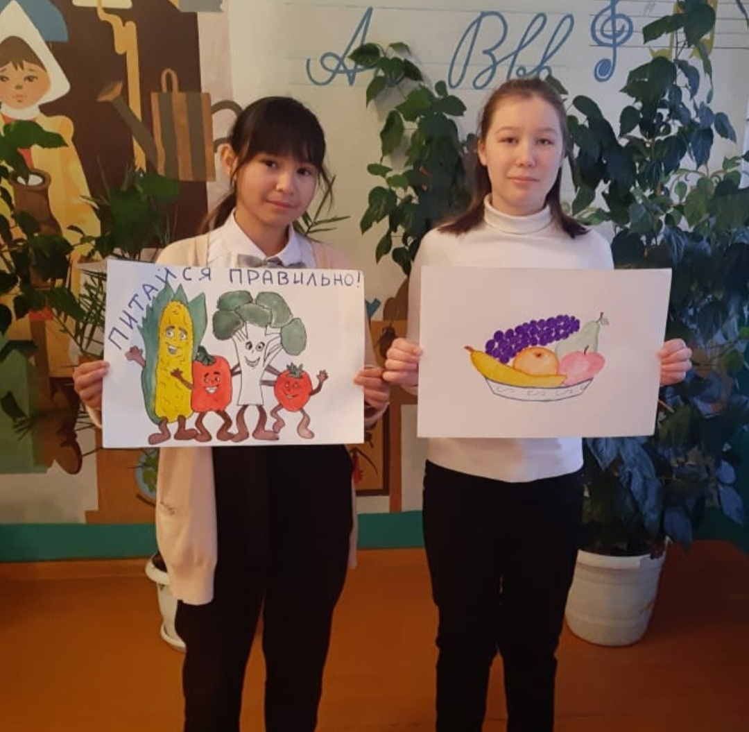В школе в рамках Недели здорового питания в 4-6 классах был проведен конкурс рисунков «Мой вкусный и полезный завтрак», для учащихся 7 — 8 классов - конкурс плакатов «Тарелка здоровья»